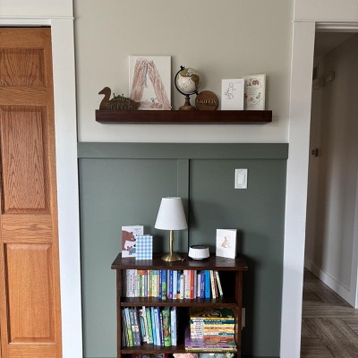 Nice sized floating shelf for my son’s nursery. Easy to hang. 4 stars because I had to return the first one I bought because there was a huge dent in the bottom, and this one still has a few blemishes.