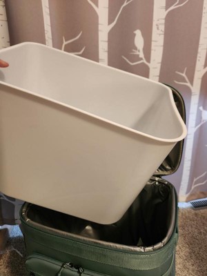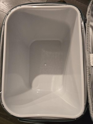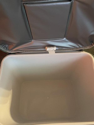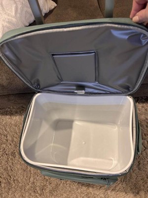 I'm digging this cooler. It has a plastic insert that makes it easier to empty and keep clean. There is a velcro flap for easy access. The handle is adjustable and makes for easy movement. The color is also great.