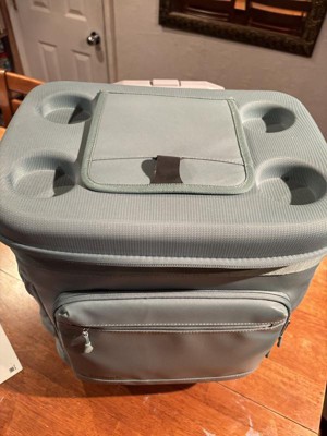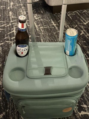 Keep drinks flowing at your next tailgate party, beach day or BBQ with the 36-Can Rolling Cooler from Embark™. This rolling cooler features a dry storage compartment, front zippered pockets and side cup holders to help keep essentials close at hand and has a convenient zippered top opening that makes it easy to get drinks out. The wheeled design and telescoping handle with comfort grip make it easy to move so you can get to the fun faster. Plus, the rolling cooler can easily hold up to 36 cans, giving you plenty of space to store a variety of drinks for everyone at your party.
