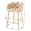 This 2-piece counter stool set features an elegant and luxurious look that can add a touch of sophistication to any space. The simple design makes these chairs versatile and adaptable to various decor styles from modern to traditional. The metal legs are sturdy and durable, ensuring the stability and longevity of the chairs. The velvet interior is elegant and high-end, and it is also easy to clean. You can wipe it with a damp cloth to remove dust and stains. The metal legs can be polished to maintain their luster and newness. The curved upholstered backrest, sponge cushion, and footrest provide excellent support and comfort. There are foot pads at the bottom of the chair legs to protect the floor.