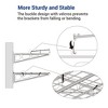 The FLEXIMOUNTS WR26B-E in black includes hardware to install four individual wall-mounted shelves, each 36 inches wide by 24 inches deep with a 100 lb. weight capacity. Shelves can be installed separately or side-by-side to create longer storage runs, such as two shelves forming a 72-inch wide unit for bulky items. This flexible setup is ideal for adapting to various garage layouts. Each shelf is supported by two wall brackets that must be anchored into wood studs or concrete for safe and secure installation.