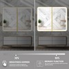 Upgrade your bathroom with this versatile LED medicine cabinet that combines modern functionality with sleek design. Suitable for surface or recessed mounting, it features a clear mirror with built-in LED lights, a defogger to keep your reflection crystal clear, and a memory function to recall your preferred lighting setting. The 3-color LED modes allow you to customize brightness and ambiance, while the integrated USB and power outlet provide convenient charging for small devices. With a spacious storage shelf behind the door, this cabinet keeps toiletries organized and easily accessible, adding both style and practicality to any bathroom.
