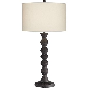 Brighten up with new style from this rustic modern lamp. From the 360 Lighting brand, the design has a faceted, geometric-shaped base that comes in a black finish with gray-wash detailing. Up top is a white color linen-cotton blend drum lamp shade that provides a contemporary finishing touch.
