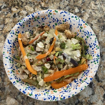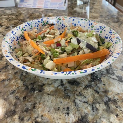 [This review was collected as part of a promotion.] This plastic dinner cereal bowl holds more food than I originally expected. I love that it is BPA-free and able to be washed in the dishwasher. It is perfect for serving food outside in the summer or for serving food to a toddler. My toddler loved the pattern, calling it a “white sprinkled bowl.” I feel good using this bowl instead of using and throwing away disposable bowls. I received an incentive to write this review.