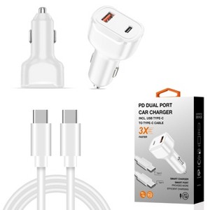 36W PD Dual Ports Travel Car Charger Adapter Fast Charging with USB-C to Type-C Cable