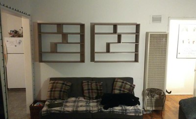 My daughter wanted a floating bookcase so I took a shot and ordered it.Big mistake Although it is a cool design for a teen girls bedroom the sizing of the shelves are terrible. You cant stand any books up except for the one shelf that has a larger section in it. Plus many of the shelves came chipped and damaged.