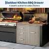 - 3 Drawers + Propane & Garbage Storage3 medium drawers (silent ball-bearing slides) organize utensils/tableware; large cabinet secures propane tanks and bulky grill tools. Built-in adjustable garbage ring keeps BBQ areas tidy.