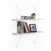 Add a modern flair to your space with the floating white Danya B. Two Level Wall Shelf with Wire Brackets. Two laminate shelves are held by white wire brackets to create a unique and eye-catching architectural look. Display pictures, collectibles, stuffed animals, awards and other decorative items, or use to store toiletries, towels and other essentials. This wall mount shelving unit is ideal in a living room, bedroom, bathroom or office. Made of sturdy laminated MDF and metal. Dimensions: 31.5 X 8.75 X 38.5 inches.