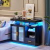 This is a buffet sideboard with a built-in charging station and integrated lighting. Featuring multiple functions, it includes drawers for additional storage and showcases a modern design with a motion-sensor feature for added convenience.