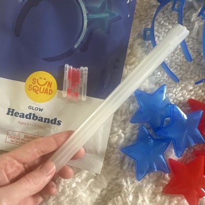 Enjoy celebrations with the 3ct Headbands Glow Sticks from Sun Squad™. These fun and colorful headbands are perfect for lighting up your Independence Day celebrations. Each headband comes with glow sticks in vibrant colors, adding a playful touch to your party attire. Made from durable materials, they're easy to wear and comfortable for all ages. Whether you're at a barbecue, picnic, or watching fireworks, these glow stick headbands are sure to make you stand out.