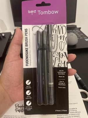 3ct Pen Set Fudenosuke - Tombow: Brush Pens for Calligraphy, Non-Toxic, Black & Gray Ink, 1.8mm Point, Art & Stationery
