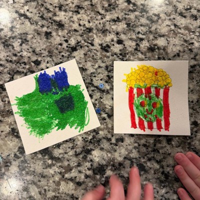 [This review was collected as part of a promotion.] My kids loved this project so much. They are ages 3 and 5, and honestly my 3 year olds coloring looked lousy, but she was pretty engaged with the water droplets, so each kid had their thing. This was a cute little craft and a nice change of pace. My one issue is that the ink got all over their hands and bodies and I hadn’t considered this prior to the craft so it resulted in getting dirty some of their nicer clothes. Wish it wasn’t so messy in that regard.