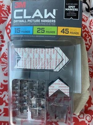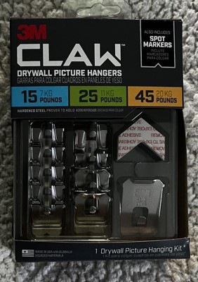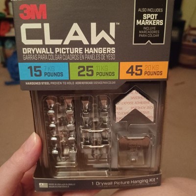 [This review was collected as part of a promotion.] I recently received a sample of the Claw Drywall Picture Hanger, variety pack to try out. I hang a lot of pictures on my walls and find it annoying to use drywall anchors and nails. So I was thrilled to see this product and was anxious to try it out. I was impressed on how easy, extremely easy, to use this product. I love the fact it can hold a LOT of weight. The marker (s) is a great addition for those who need it. It is provided so you do not have to try and remember where you want to insert the claw. You need two hands to push the claw in at the same time, so it goes in evenly. Took just under a minute to mark my wall, line up the claw and push it in. My picture is hanging nicely, and I did not need any tools, just my fingers. Could not be happy. Love how creative 3M is with their product innovations!