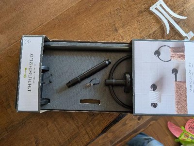 Maintain an organized and stylish bathroom with this Style 2221 Bath Collection from Threshold™. This bath accessories collection features a variety of towel rods and rings, as well as toilet paper holders, to help you keep towels and toilet paper organized and easy to access. Each piece in this bathroom organization collection comes in black to fit into any decor style or color palette.