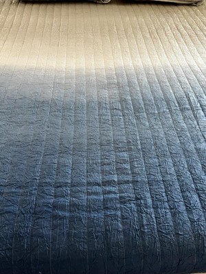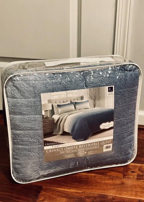 [This review was collected as part of a promotion.] The crinkle ombré navy/gray quilt by Lush Decor is beautiful. I like the modern ombré look and I think the navy/gray colors look really nice together. This quilt is also reversible with a gray, soft underside. It’s machine washable and after initially washing it, the quilt felt softer, just as it said on the packaging. It’s nicely made and I think it will last us a long time. This is a really nice quality quilt that is light yet warm and it looks beautiful.