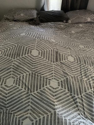 [This review was collected as part of a promotion.] This King Comforter was very fluffy and soft. It fit over my King mattress perfectly and provided the pattern I wanted without being too crazy for the room. It was a nice gray adn was modern and nice. I also liked that it came with 2 shams and I added other pillows but those 2 shams tied it together nicely. It felt like nice quality material and was warm but not too hot when used.