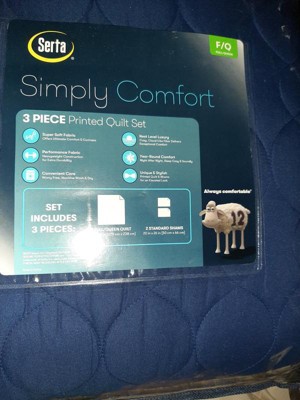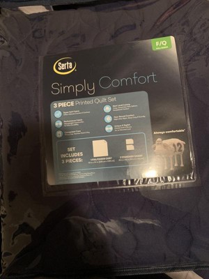 3pc Full/Queen Solid Quilt Set Navy - Serta: Polyester Weave, Machine Washable, Year-Round Comfort