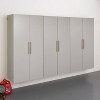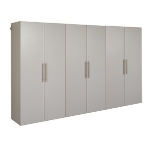 The HangUps Storage Cabinet Collection offers versatility for your ever changing storage needs in the garage, laundry room, office or workshop. The Cabinets mount securely to the wall with a heavy duty metal rail and hook system. The wall mounted feature ensures easy cleaning beneath the cabinets and protects your stored items from water & dirt. The HangUps Collection is constructed using laminated composite wood and features metal handles and adjustable hinges. This product ships ready-to-assemble and includes all hanging rails and fastening bolts. Add other cabinets from our HangUps Collection to create a storage system to convert any cluttered room into an organized space. Constructed from non-toxic, CARB-2 compliant, laminated composite woods. Ships ready to assemble, includes an instruction booklet for easy assembly and has a 5-year manufacturer’s limited warranty. Manufactured in Canada and meets all North American safety standards. Set E Includes: