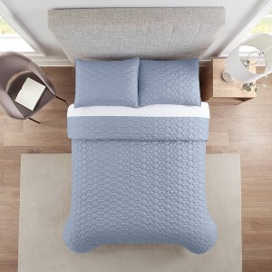 3pc King Solid Quilt Set Light Blue - Serta: Year Round Polyester Bedspread, Machine Washable, Plain Weave