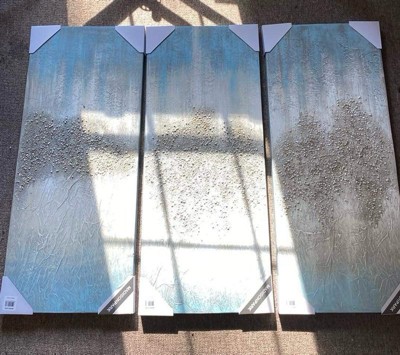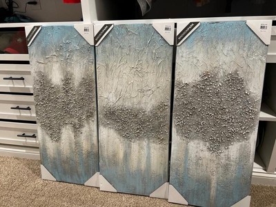 [This review was collected as part of a promotion.] I absolutely love this 3 piece canvas wall art set. The colors are perfect and the texture really stands out. The embellishment in the middle really catches my eye. It is textured with little rocks and glitter. I have had so many compliments on it. This is really a stunning 3 piece set.