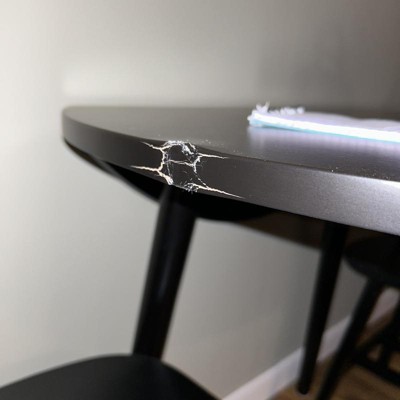 Box table top came in was damaged with a big ding on side of table. Chairs all put together which were difficult! Have to return whole set not just table top. Very disappointed not worth the money paid either