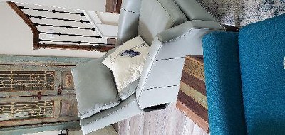 Packaged very well. Photo shows unpacked item. The tables have greenish blue accents and different hues of wood which matches our reclaimed antique iron doors. Quality and workmanship is great. Highly recommend.