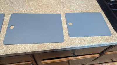 This is a nice cutting board set because each board is thin so they don’t take up much space when storing yet they’re hard and seem durable, not flimsy and easily scratched like other thin cutting boards. I just wish the texture was a little "grippier" on my countertop so cutting felt safer, especially when my kids help in the kitchen.