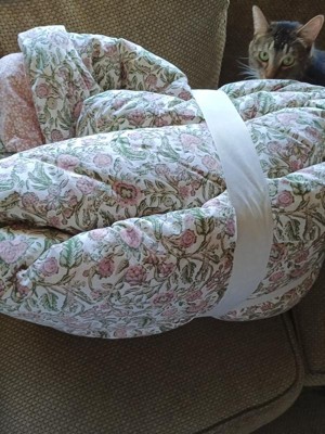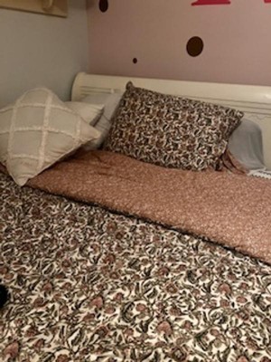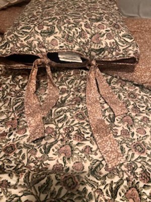 I just received this beautiful reversible comforter. The colors are very lovely. Love the flower print. The fabric is very very soft. I really like how it’s reversible. The pillow shams tie on one end, makes a cute personal touch.