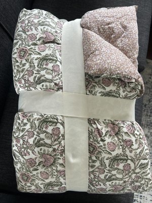 3pc Full/Queen Reversible Floral Comforter Set Pink/Green- Threshold™ designed with Studio McGee