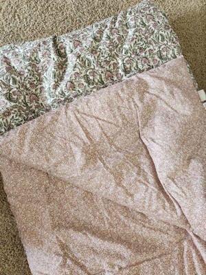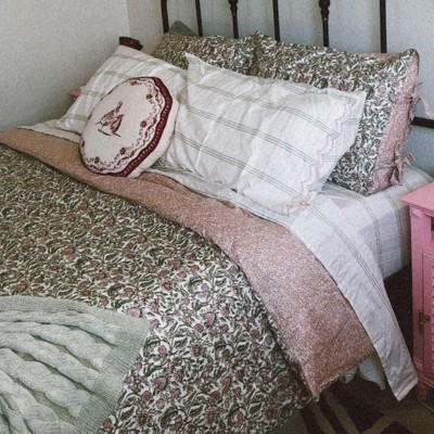 I purchased two of these comforters for my daughters who now share a room. They love how fluffy the comforters are, as well as, the reversible feature. One daughter uses the purple side up and the other uses the pink. I have searched high and low for cottage core, budget friendly comforters. This was our third attempt and we finally got it right! They were on sale for $35 each, even less expensive than some of the others we tried and way better quality! The bow detail on the sham is especially adorable. We bought the sheets shown in the photos and the whole set is beautiful together.