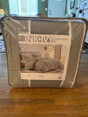 Ink+Ivy 3pc Full/Queen Shay Striped Comforter Set Sage Green: Hypoallergenic, Jacquard Weave, OEKO-TEX Certified
