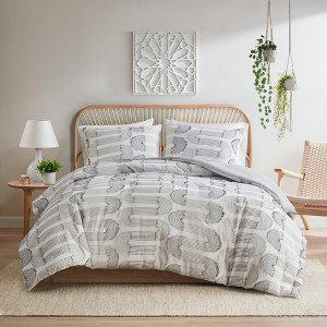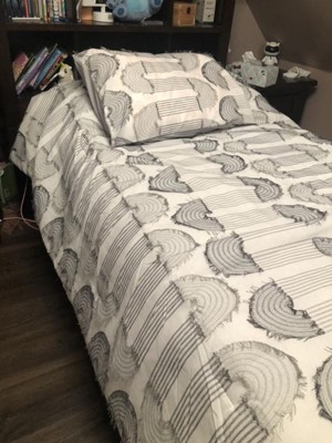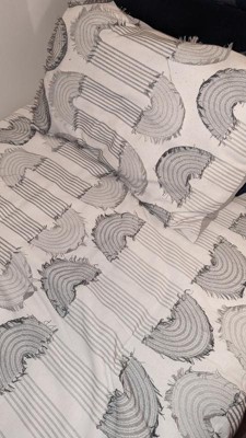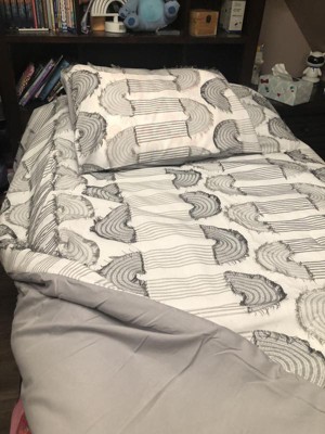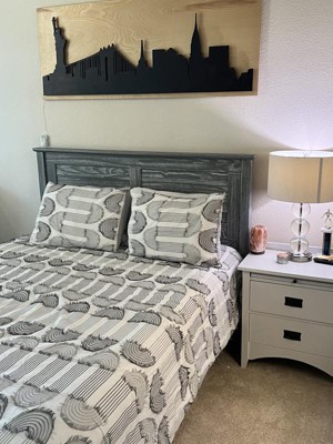 [This review was collected as part of a promotion.] I like the design on this comforter set and how it has a bit of texture added. Its soft and you can fluff it up by shaking it before laying it on the bed. I think the gray/light color scheme will match any bedroom and just make it look better. It's a good quality and material that won't get ruined in the wash! It's comfortable to sleep with too.