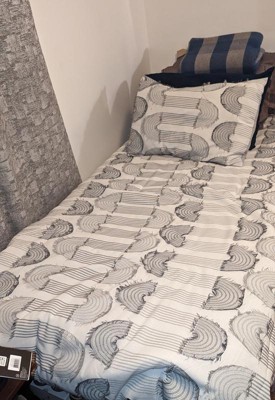 [This review was collected as part of a promotion.] I really love the Astoria Clip Jacquard Comforter Set. It comes with a sheet and comforter. It's very big and very comfortable. We felt so cozy cuddling underneath it. The sheets were soft and didn't scratch my skin. I would highly recommend this set. It also has a cure grey design.