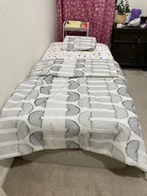 [This review was collected as part of a promotion.] This Astoria brand jacquard pattern comforter set added a great value to kids bed. Got lot of compliments for this comforter on kids bed. Simple and decent pattern with grey and white color combination gave a contemporary look. This is twin size comforter and it came with 2 shams. This comforter set on bed gave a unique style. Polyester materials made it easy for machine wash and colors didnt ade free wash. A great quality product and definitely would try for different patterns in this product line.