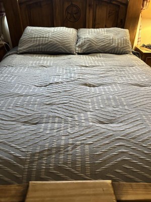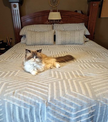 [This review was collected as part of a promotion.] We’ve been using this comforter and the pillow cases and we’ve been loving it. The material is soft but not too thin either. I love the texture of it in both. Only complaint is that some yarn has started to come off. But besides this, I’ve enjoy it.