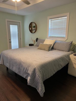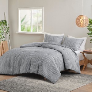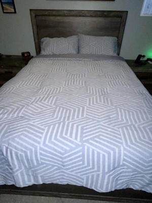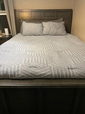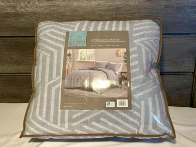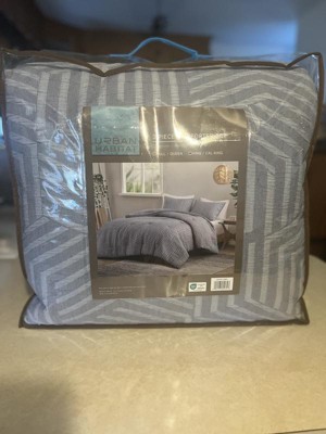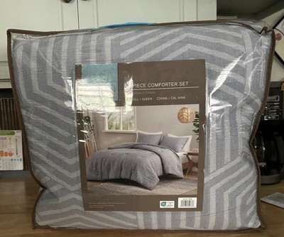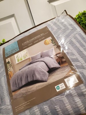 [This review was collected as part of a promotion.] This three piece comforter set from Urban Habitat is perfect for any bedroom. The set comes with one comforter and two shams. The shams are large enough for the large pillows which is very hard to find. The comforter has a textured pattern featuring the various shades of grey. The warmth from the blanket without it being too heavy was just what we were looking for and it is extra soft. The blanket is large enough to where it covers the entire bed. If you are looking for a versatile set, this is it!