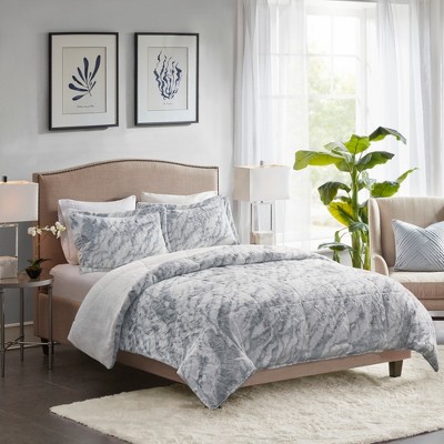 3Pcs Comforter Set, Modern Cozy Solid Bedding Set, Soft Fabric Bed Comforter, Grey/Blue, Queen