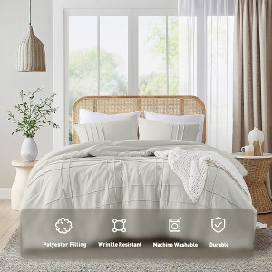 This stylish pinch pleat comforter, accented with a modern grid pattern, offers the perfect mix of plush loft and lightweight comfort. Filled with premium polyester, it delivers cozy warmth in cooler months and breathable comfort during warmer seasons, making it ideal for year-round use. The pre-washed microfiber fabric is specially treated for enhanced softness, pairing a clean look with subtle texture to complement any bedroom style. Crafted from high-quality microfiber and featuring our advanced dyeing process, this durable comforter set is machine washable for long-lasting beauty and everyday convenience.