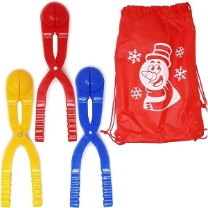 Super Value Snow Maker Toy with 3 Pack Red, Yellow & Blue Snowball Maker, and Bonus Tote Bag.
