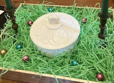 You get a decent amount and it’s a pretty shade of green. I don’t usually decorate for Easter, but I stuffed some of this in a tray with some leftover mini Christmas balls and it looks pretty festive. 😆