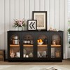 4-Door Arched Glass Buffet Cabinet with Adjustable Shelves, MDF & Pine Wood Sideboard for Kitchen, Dining Room