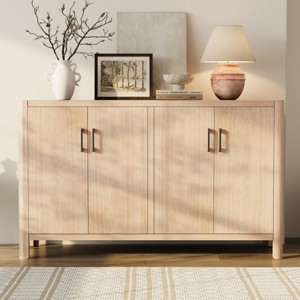 Built for both style and storage, this 4 door storage cabinet features soft-close hinges for a smooth, quiet experience every time you access your items. The spacious interior is ideal for keeping books, dinnerware, or electronics neatly out of sight, while the solid wood buffet table top offers generous surface space for décor, serving, or display. Whether you use it as a natural wood sideboard in the dining room, a soft close farmhouse cabinet in the living room, or a farmhouse cabinet for small spaces in the entryway, this piece adapts easily to your needs.