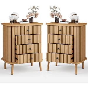 - ? STYLISH DESIGN: Fabricated through a special technology, the wood nightstand with drawers features an imitation bamboo surface with a sleek curved profile design that is both unique and elegant. The addition of 4 drawers for storage space enhances the appealing detail of this modern dresser.