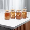 Enjoy your favorite beverages in style with the 4-Piece Glass Mugs with Lids and Straw Set. This glass drinkware set of 4 includes four 16 oz mason jar glasses, each featuring an eco-friendly Bamboo Lids and Straw with a silicone seal to keep drinks fresh and secure. The reusable straws add a sustainable touch, making these cups perfect for iced coffee, smoothies, teas, and more. Each drinking glass with straw is designed for convenience, with a comfortable grip handle and durable glass construction. These jars are both functional and fashionable, offering a great solution for your everyday drinks.