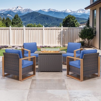 - 【4-Piece Patio Furniture Set】This outdoor conversation set includes a wicker sofa, two swivel chairs, and a 41" fire pit table. Constructed with a rust-resistant steel frame and weather-resistant PE wicker, it withstands the elements for long-lasting use
