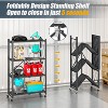 Maximize your storage instantly with this heavy-duty foldable 4-tier shelf. Crafted from rust-resistant metal, it offers exceptional strength—holding up to 600 lbs without wheels or 300 lbs with wheels. The no-assembly design sets up in just 5 seconds, while the fold-flat frame saves space when not in use. 360° swivel casters with two locking brakes ensure smooth mobility and secure placement. Perfect for garages, kitchens, offices, and more.