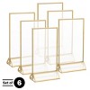 Display photos, wedding table numbers, or tabletop signage with the chic Gold Picture Frame 6-Pack by Great Northern Popcorn. Each elegant 4x6 picture frame sits on a vertical stand and has a double-sided display that is perfect for showcasing menus or table numbers from any angle. The durable acrylic and metal construction ensures you can reuse these picture stands for display again and again.