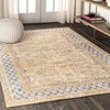 This rug is a classic, with shabby-chic style inspired by English Country homes. A center field of yellow with stylized flowers is surrounded by a stylish argyle border. This ornate rug is an elegant touch for your living room, bedroom, dining room, or den.