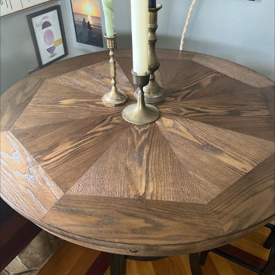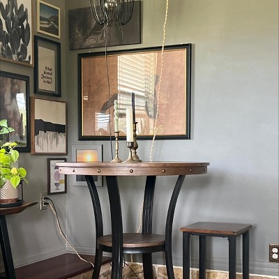 Nice bar table. Was easy to put together and feels sturdy. Love the wood color too. Has an industrial or rustic feel. Fits perfect in my little corner. Would recommend!