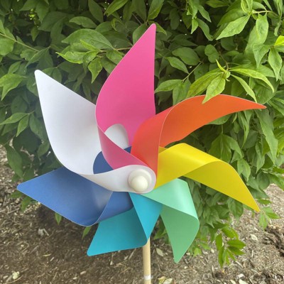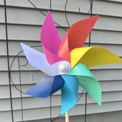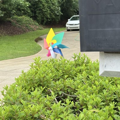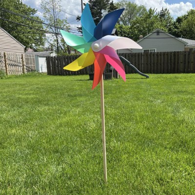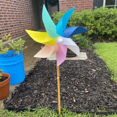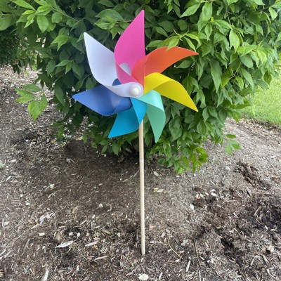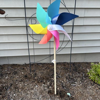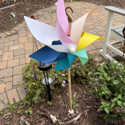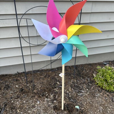 [This review was collected as part of a promotion.] This garden pinwheel is so perfect for your garden. It’s colors are so bright you’ll feel like it’s summer even if the sun isn’t shining. This pinwheel has a different color on each fan blade. It’s placed on a stick that’s about two feet tall. The pinwheel itself is larger than my hand. This looks great next to my bushes along my walkway. The colors really green your attention. I received an incentive to write this review.